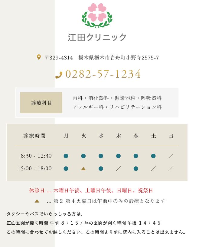 午前 栃木駅:AM 8:05発 → クリニック:AM 8:37着